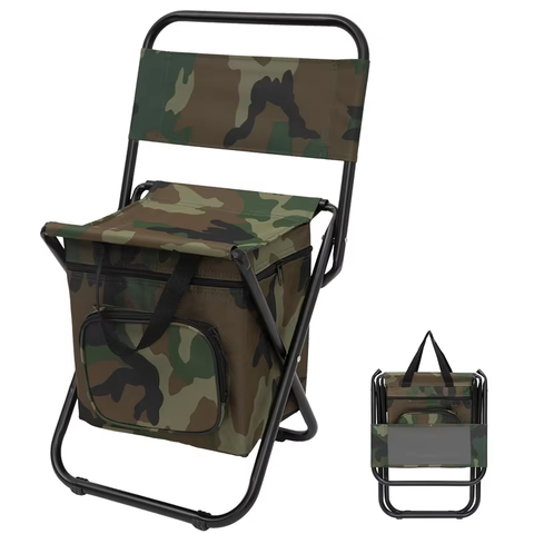 आउटडोर मछली पकड़ने की सीट के लिए कूलर बैग बैकरेस्ट स्टूल के साथ पोर्टेबल कॉम्पैक्ट फोल्डिंग कुर्सी